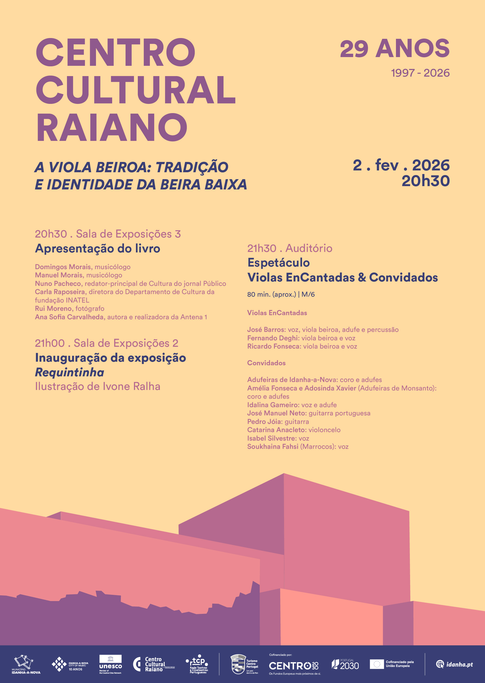 Às 21h00, é inaugurada a exposição “Requintinha”, de Ivone Ralha, que reúne a obra gráfica do livro-disco, que será apresentado em concerto, às 21h30, no auditório. Ao grupo Violas EnCantadas vão juntar-se inúmeros convidados: Adufeiras de Idanha-a-Nova, Amélia Fonseca e Adosinda Xavier (Adufeiras de Monsanto), Idalina Gameiro, Isabel Silvestre, José Manuel Neto, Pedro Jóia, Catarina Anacleto e Soukhaina Fahsi (Marrocos).