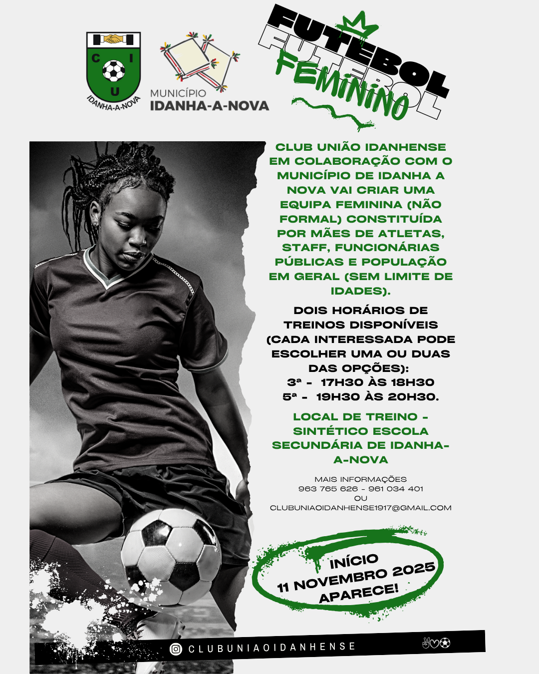 O Município de Idanha-a-Nova em colaboração com o Club União Idanhense vai criar uma equipa feminina (não formal) constituída por mães de atletas, staff, funcionárias públicas e população em geral (sem limite de idades).